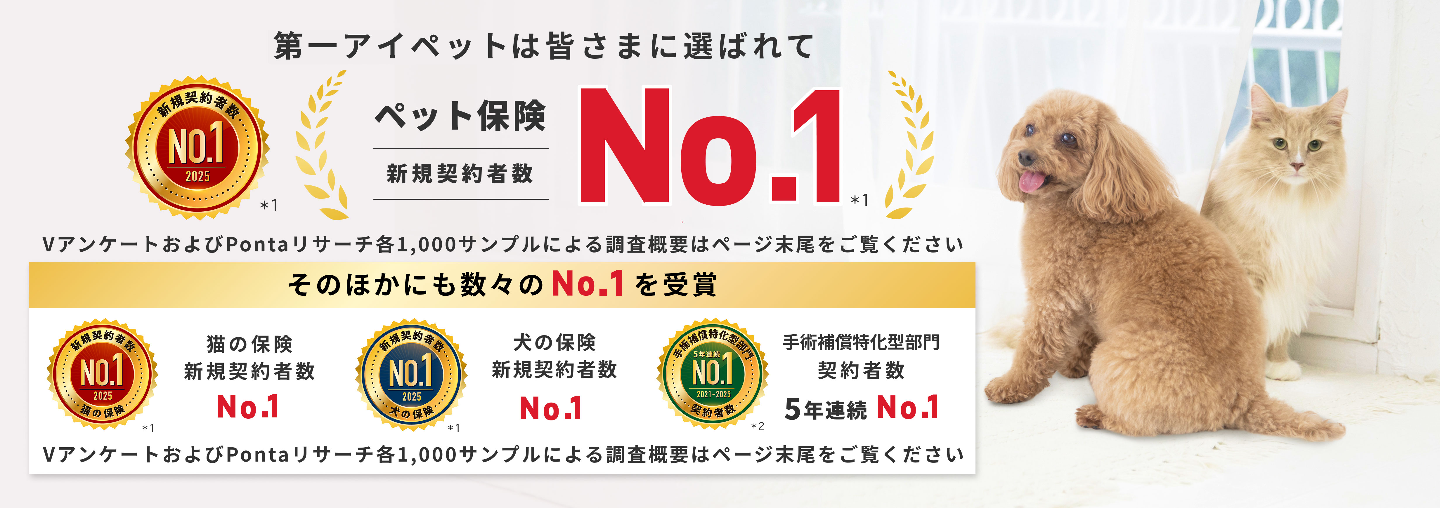 *1 新規契約者数No.1、犬の保険新規契約者数No.1、猫の保険新規契約者数No.1