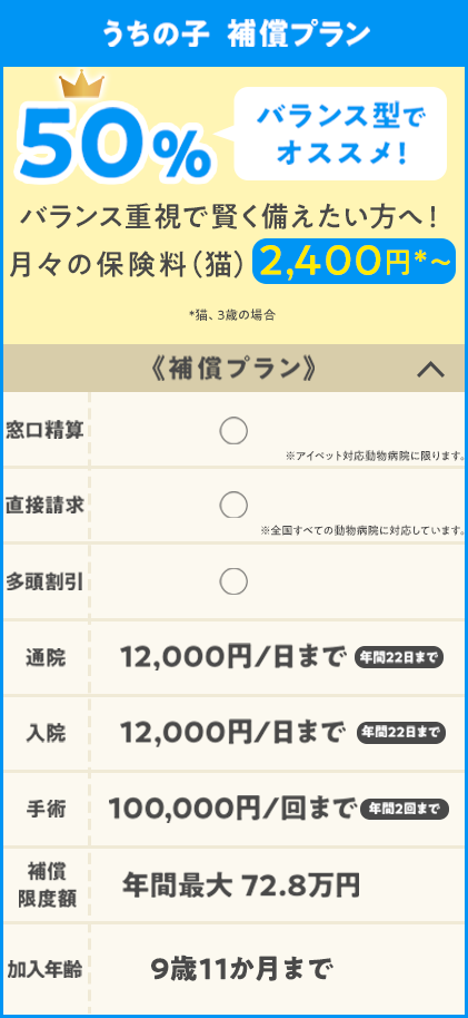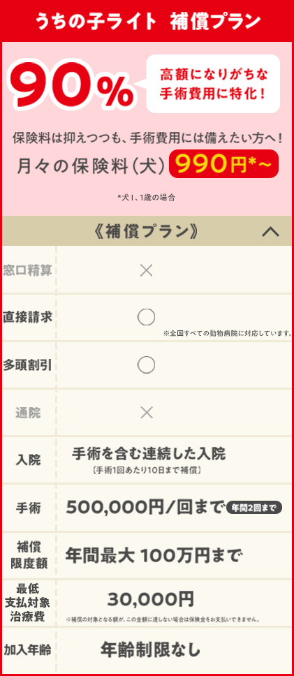 ※例えば、同一のペットに対し「うちの子」複数加入はできかねますが、「うちの子」「うちの子ライト」1商品ずつの加入は可能です。